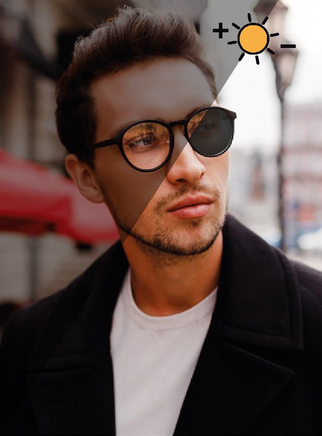 Los lentes fotocromáticos B-CROM bloquean eficazmente los rayos UVA y UVB, protegiendo tus ojos de la luz natural y artificial.